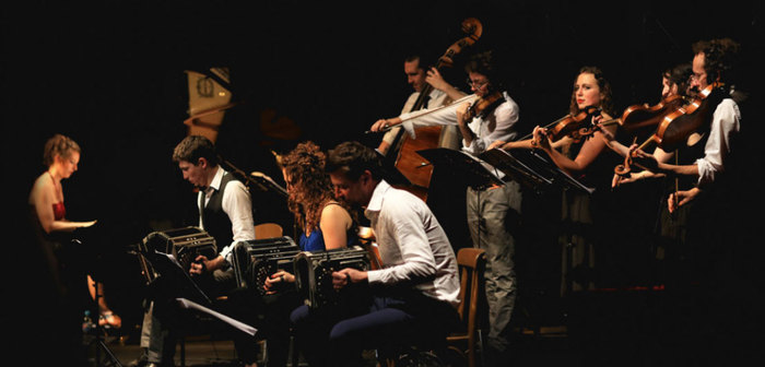 Sur la scène, les artistes semblaient également heureux de retrouver leur public. Au milieu du plateau, l’irremplaçable Juliette qui (elle l’avoua elle-même après le spectacle) avait un peu « la connerie » ce soir-là, émaillant le spectacle de nombreuses interventions plus hilarantes les unes que les autres. Autour d’elle, l’orchestre Tango Silbando, une grande formation de huit musiciens : trois violons, un alto, trois bandonéons et un piano. Derrière son clavier, Chloé Pfeiffer a réarrangé les morceaux de Juliette pour nous faire entendre ces versions inédites de son répertoire.