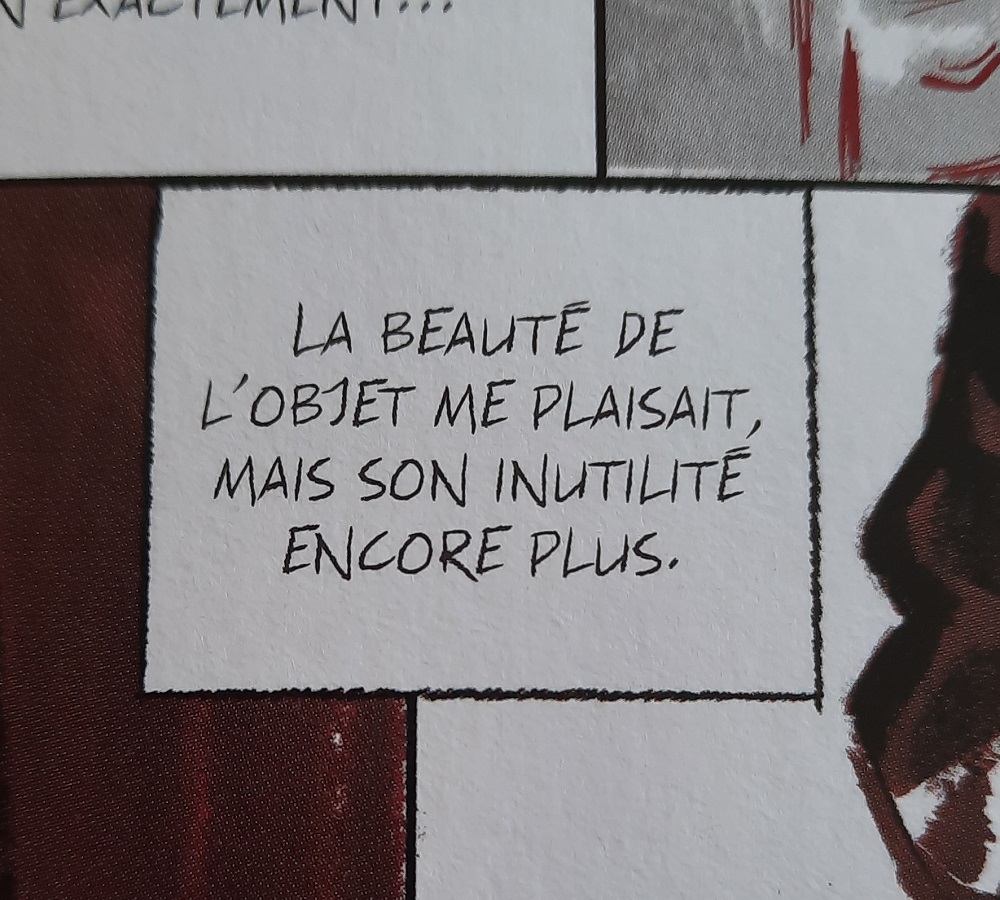 Dans le scénario de cette adaptation, il a également su retenir les moments les plus significatifs. J’ai particulièrement aimé l’épisode au cours duquel Winston achète dans une boutique un presse-papier en corail. Pourquoi l’achète-t-il ? Parce qu’il est beau. Pire, parce qu’il est inutile.