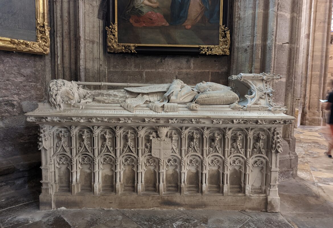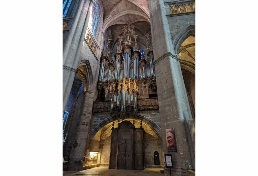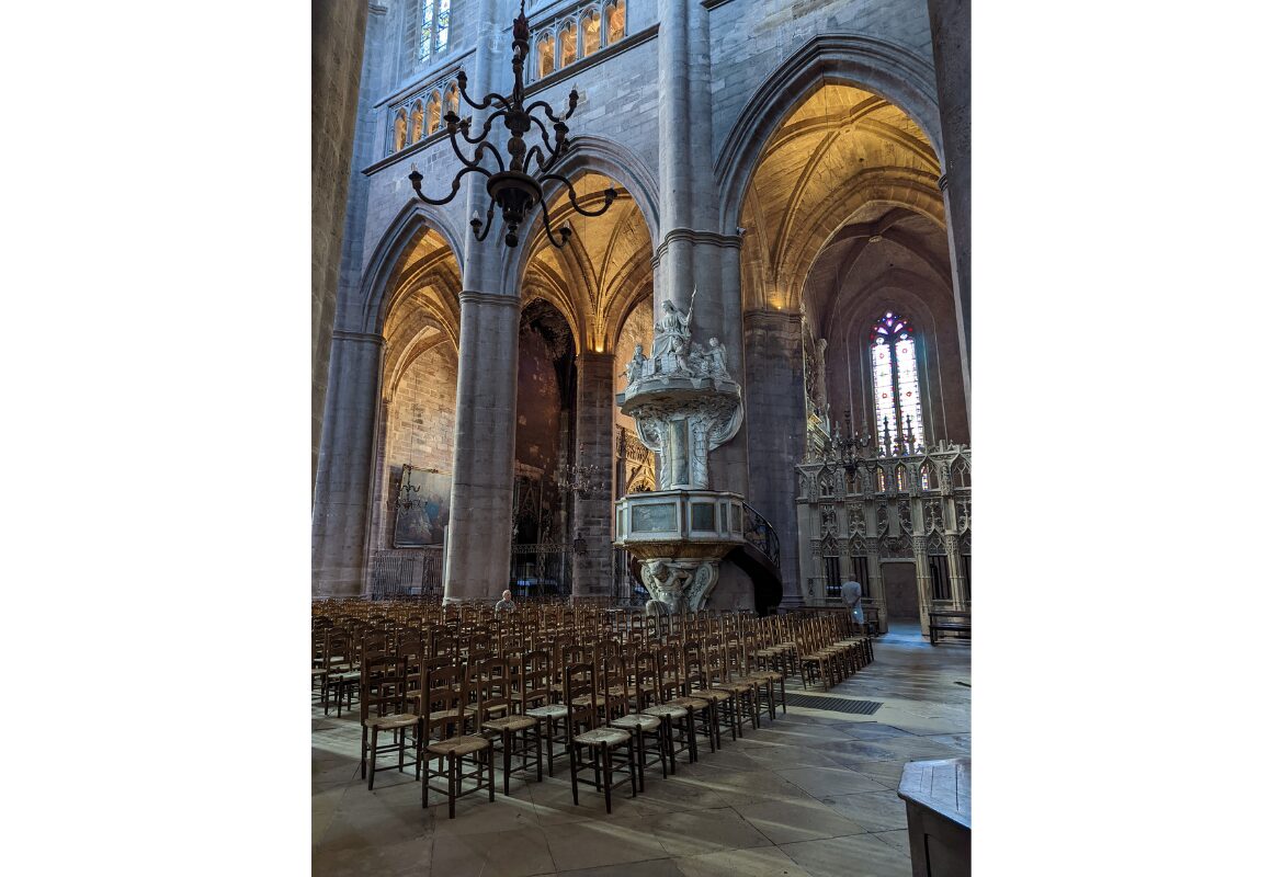 En parcourant les bas-côtés, j’ai été touchée par les fresques effacées qui subsistent dans certaines chapelles, traces fantomatiques d’un passé autrefois très coloré. Le circuit des chapelles réserve d’autres découvertes comme la chapelle de la Réconciliation dont les boiseries du XVIème siècle sont d’une finesse absolue. J’ai également admiré le tombeau sculpté de l’évêque Raymond d’Aigrefeuille, exemple magnifique de sculpture funéraire gothique.
