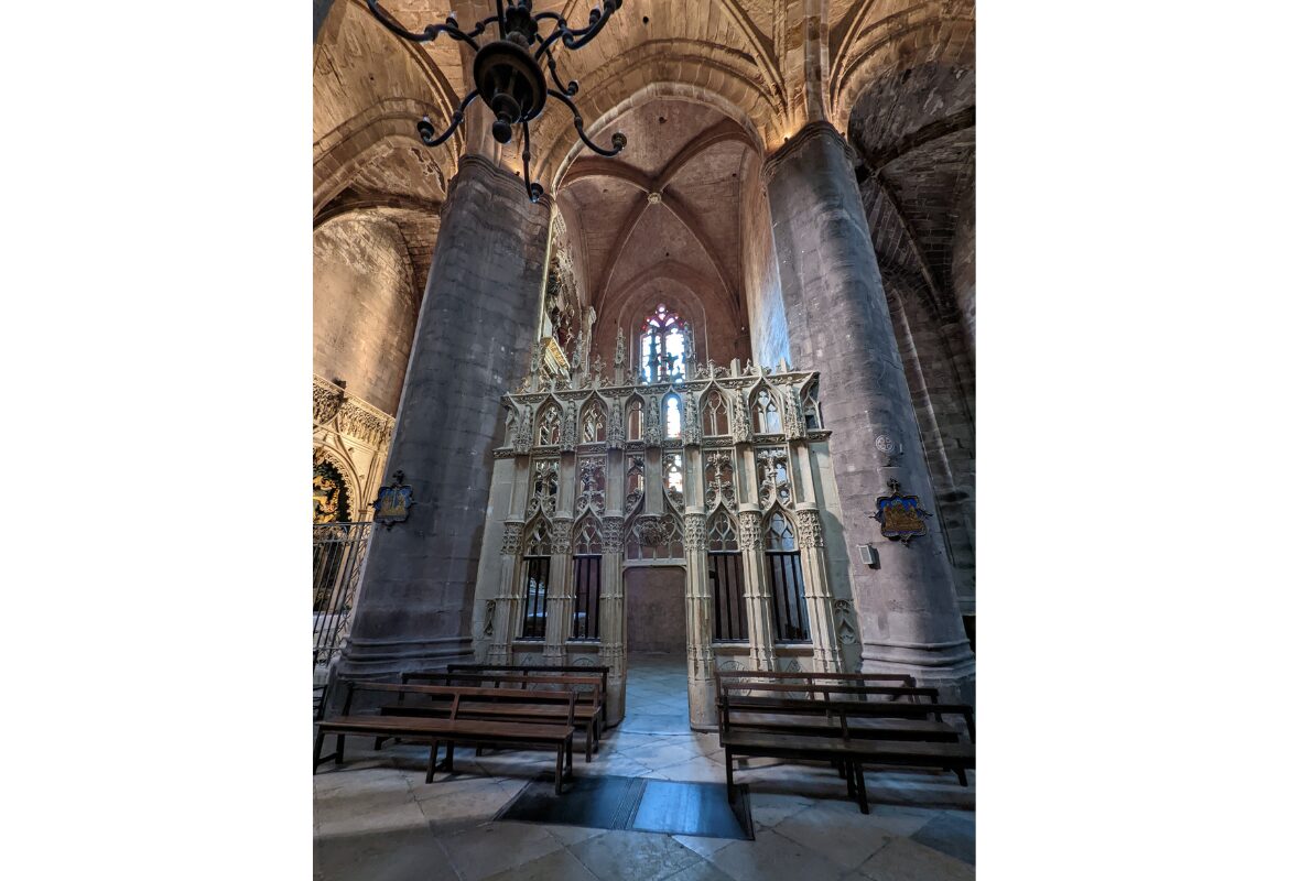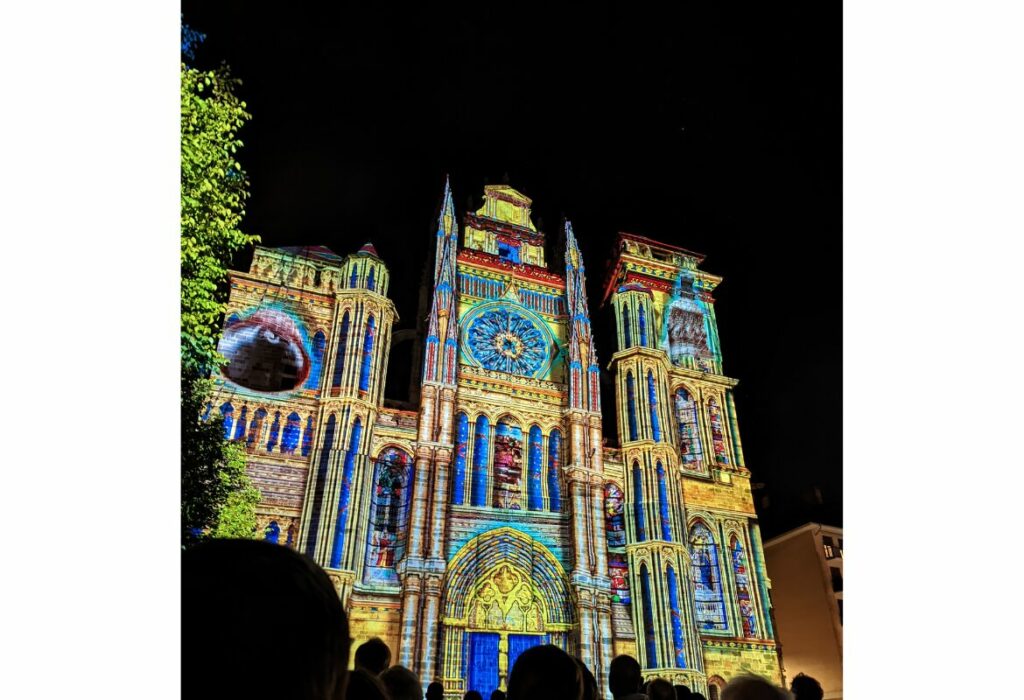 J’ai d’abord rencontré l’édifice de nuit, sous le faisceau d’un spectacle son et lumière qui m’en a énormément appris sur son histoire. Introduction parfaite pour comprendre pourquoi cette façade ressemble tant à une muraille ! Sa partie occidentale, massive et sans portail, était autrefois intégrée aux remparts de la Cité. Ce qui signe d’ailleurs l’originalité absolue de cet édifice, c’est sa façade totalement asymétrique. Une curiosité architecturale qui témoigne des remaniements successifs et de l’adaptation aux contraintes militaires de l’époque.