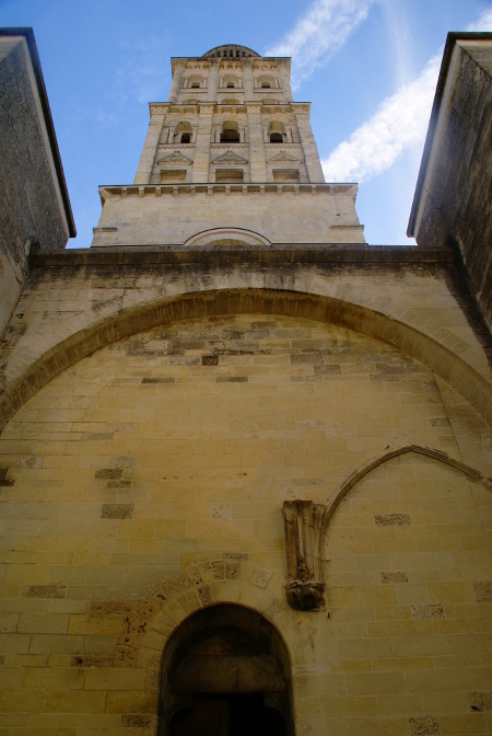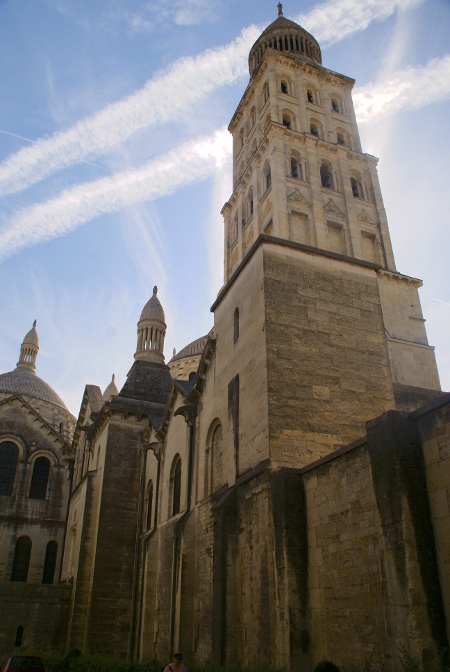 L’histoire religieuse de ce lieu remonte à très loin, aux IVème et Vème siècles. Ce premier édifice a été détruit au VIIIème siècle par les invasions normandes, mais il en reste quelques traces. Un second édifice a été édifié à partir du Xème siècle. Il est agrandie au XIème siècle pour accueillir les pèlerins sur la route de Saint-Jacques-de-Compostelle. Le look actuel de l’église à coupoles date des XIIème et XIIIème siècles. Elle a été restaurée au XIXème siècle. Voilà pour les jalons historiques ! 😉 Et Saint Front, ce drôle de nom, vient du premier évêque de Périgueux.
