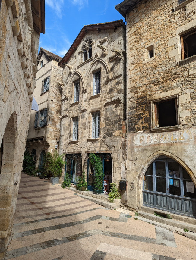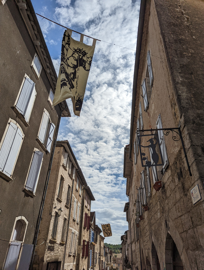 Bien entendu, c’est le look typiquement médiéval de Caylus qui nous a séduit et a motivé cet arrêt impromptu. Nous nous sommes donc arrêtés un petit moment pour arpenter ses ruelles. Un castrum existait à l’emplacement du village avant 1176. Bon, le lieu a souffert des ravages de Simon IV de Montfort pendant sa croisade contre les Albigeois en 1211 et 1212. Comme beaucoup de lieux dans la région, vous savez ! Mais dès le XIIIème siècle, une bastide s’érige à proximité immédiate et la ville grandit gentiment. Elle accueille même Louis XIII en 1622 !