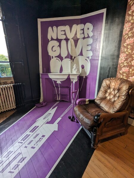 On a tous beaucoup aimé cette visite ! Petits comme grands, nous avons adoré explorer les différentes pièces et leurs univers. Une belle occasion de faire découvrir aux enfants différentes techniques autour du street art, du graffiti, du dessin automatique, de l’illustration jeunesse… J’ai beaucoup aimé pour ma part le travail sur l’organisation et le placement des œuvres. Une immersion totale, qui repense les perspectives et l’intégration dans le décor.