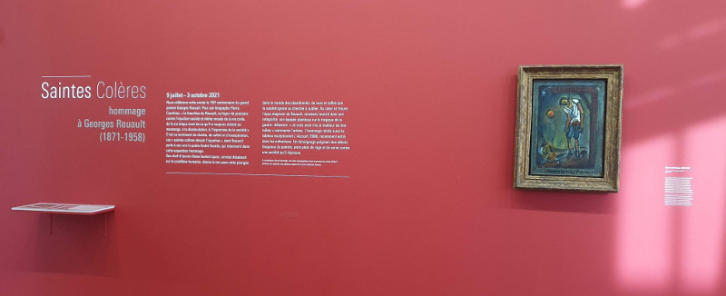 Avec cette exposition “hommage”, le centre Pompidou célèbre le 150ème anniversaire du peintre, né en 1871. On retrouve exposés dans la salle une vingtaine d’œuvres, issues du fond très riche du Musée national d’art moderne. La famille Rouault lui a en effet fait plusieurs donations. Le titre “Saintes colères” est repris de l’une des formules de l’artiste, qu’il a utilisé dans une lettre adressée à l’écrivain et poète André Suarez.