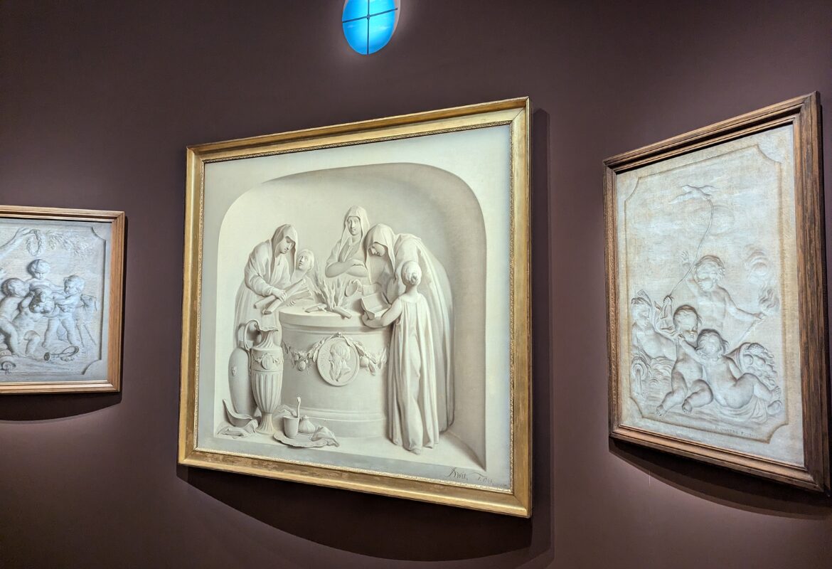 J’adore ce thème. Ca me fait aussi un peu penser à l’hyperréalisme (en particulier cette chemise en marbre, qui me rappelle le polystyrène en marbre de Fabio Viale). Les peintures qui imitent les bas-reliefs sont stupéfiantes !