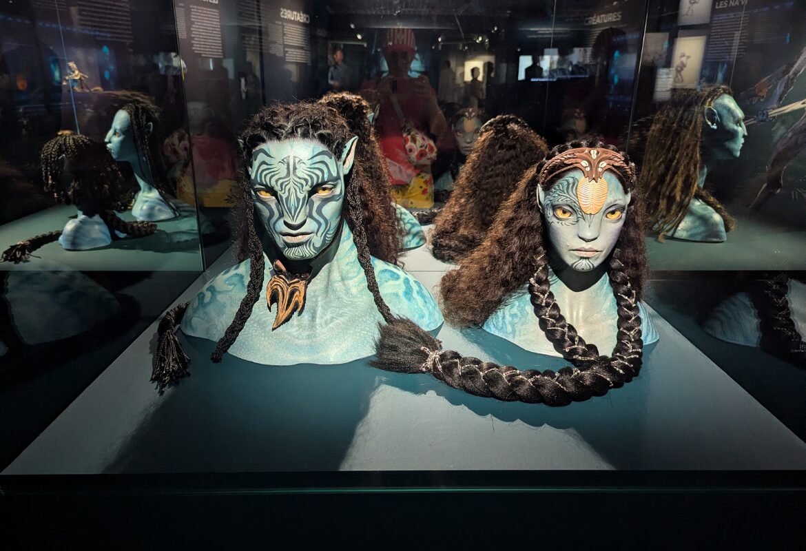 J’étais un peu partagée avant d’aller voir cette exposition consacrée à James Cameron, car j’appréhende souvent comment on peut rendre l’art du cinéma au travers d’une scénographie. Pas toujours évident de résumer, ou plutôt d’embarquer, des spectateurs qui ont aimé les films dans une présentation qu’on imagine plus statique. Finalement, mes doutes de départ se sont envolés : cette exposition m’a vraiment embarquée.