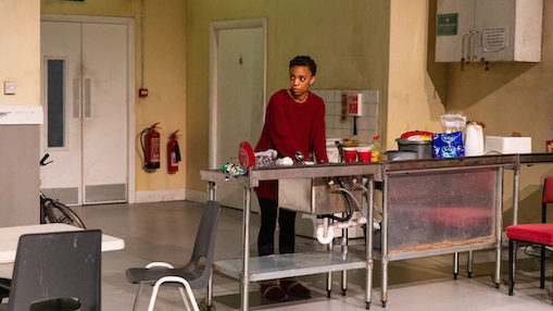 Nous sommes en Grande-Bretagne, dans un local loué par les services sociaux. Il abrite quelques personnes de tous âges et de diverses origines : migrants, chômeurs ou retraités sans ressources. L’endroit est inconfortable mais passager, le temps de pouvoir reloger (du moins en principe) celles et ceux qu’il accueille. Alexander Zeldin nous propose d’entrer sous son toit et d’y partager en toute proximité des moments drôles et touchants, profondément humains. À petites touches, à travers l’extrême simplicité d’échanges et de situations quotidiennes, le spectacle reconvertit l’information en émotion, redonne un sens concret à des mots qui s’usent parfois dans nos consciences à force d’être employés.