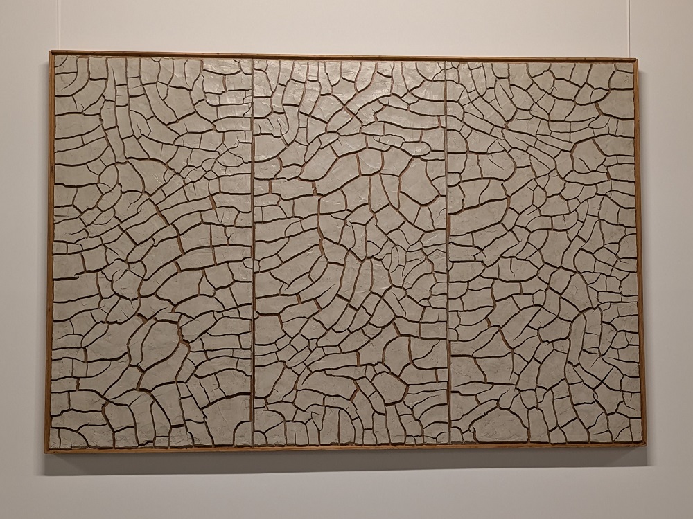 La visite de la Fondation, répartie entre le Palazzo Albizzini et les vastes espaces des Ex Seccatoi del Tabacco (anciens séchoirs à tabac). Pour ma part, je n’ai visité que le deuxième espace, où l’on découvre surtout son cycles consacré aux Cellotex. Chacun témoigne d’un dialogue radical avec la matière et le temps.