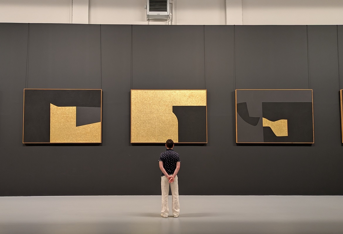 Face à certaines œuvres, notamment les grands Cellotex noirs, l’esprit ne peut s’empêcher de penser à Pierre Soulages (dont je vous avais parlé ici et Allychachoo là). Comme le peintre français, Burri explore le noir non pas comme absence, mais comme révélateur de lumière. Les reliefs, stries et variations de surface jouent avec l’éclairage, créant un dialogue mouvant entre opacité et éclat. Là où Soulages privilégie la pureté gestuelle de la peinture, Burri laisse la matière elle-même « écrire » sa texture, mêlant accident et maîtrise.