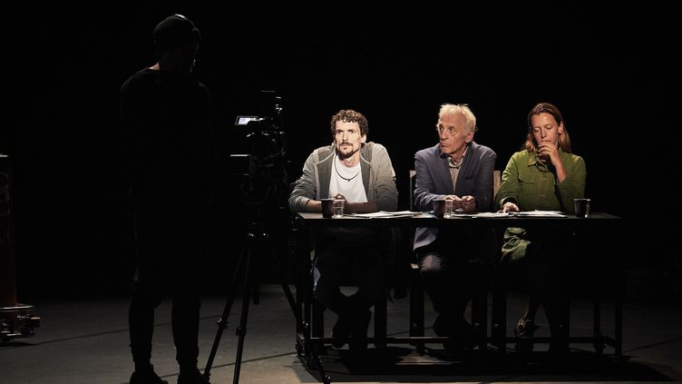 La théâtralité de la reconstitution est assumée, affichée. On n’est pas là pour jouer le réalisme et se prêter à un jeu d’exhibitionnisme et de voyeurs. Oui, il y a de la nudité. Oui, il y a de la violence crue. Mais elles ne sont jamais gratuites. Ainsi, pour désamorcer toute forme d’illusion, le spectacle se montre comme tel : casting des acteurs, adresse au public, mise en abîme – et à distance – avec un écran qui reproduit ou transforme les actions enregistrées en direct par un caméraman sur la scène…