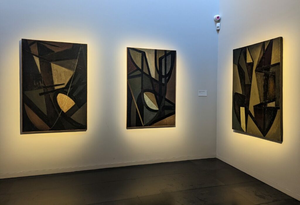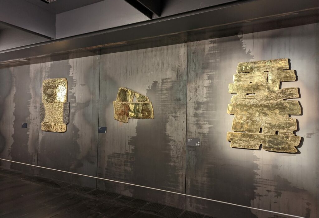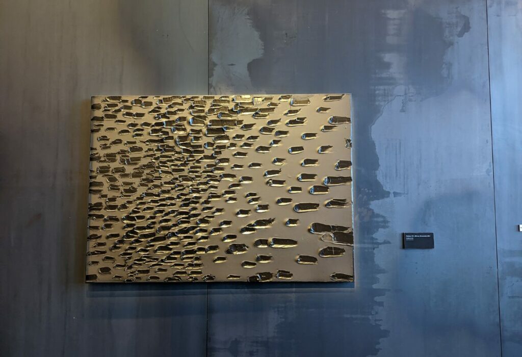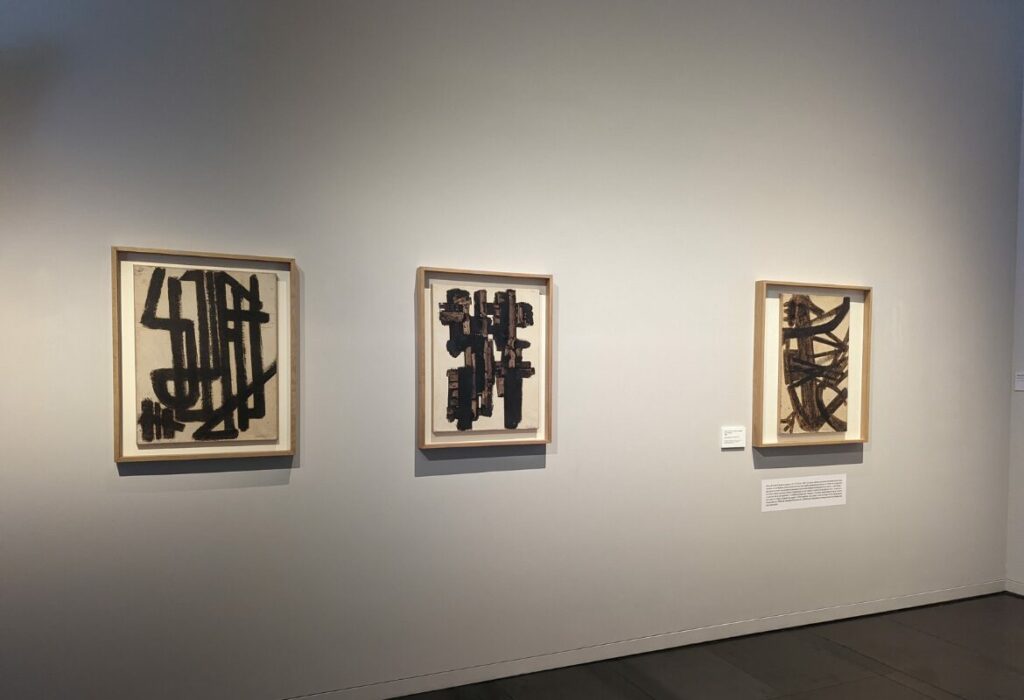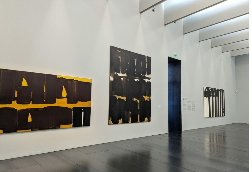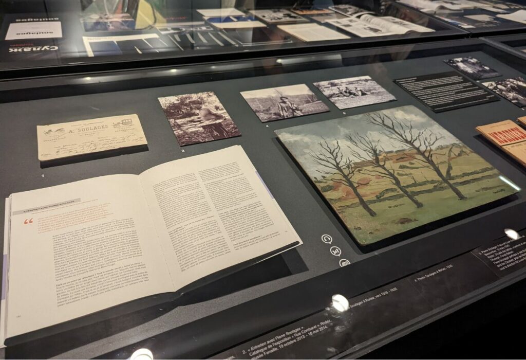 À l’intérieur, le parcours muséographique déconstruit l’idée reçue selon laquelle Soulages ne serait que “le peintre du noir”. On y découvre la richesse incroyable de ses débuts. Et notamment les célèbres Brous de noix réalisés dans les années 1940 et 1950. Ces œuvres sur papier, aux tons chauds et terreux, montrent une recherche sur la forme et la matière qui préfigure déjà ses grands formats futurs. Le musée possède également une collection unique de gravures, d’eaux-fortes et de lithographies, révélant la face plus artisanale et technique du travail de l’artiste.