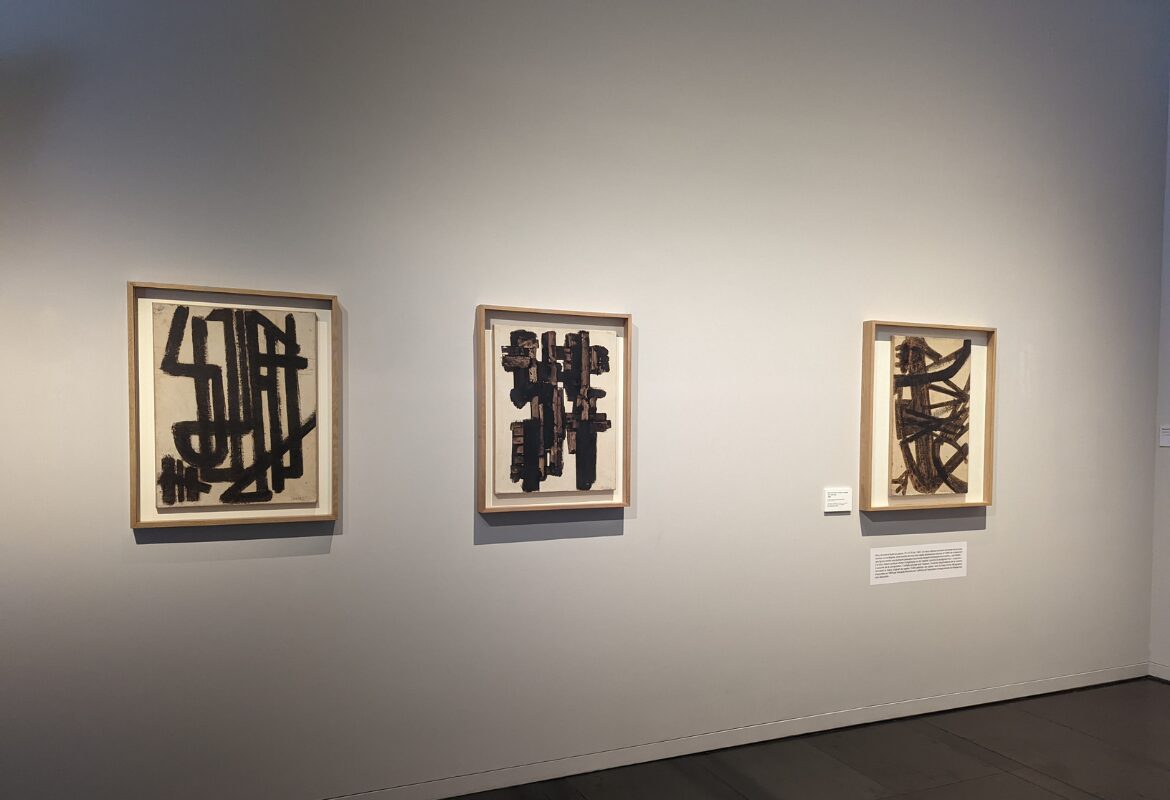 À l’intérieur, le parcours muséographique déconstruit l’idée reçue selon laquelle Soulages ne serait que “le peintre du noir”. On y découvre la richesse incroyable de ses débuts. Et notamment les célèbres Brous de noix réalisés dans les années 1940 et 1950. Ces œuvres sur papier, aux tons chauds et terreux, montrent une recherche sur la forme et la matière qui préfigure déjà ses grands formats futurs. Le musée possède également une collection unique de gravures, d’eaux-fortes et de lithographies, révélant la face plus artisanale et technique du travail de l’artiste.
