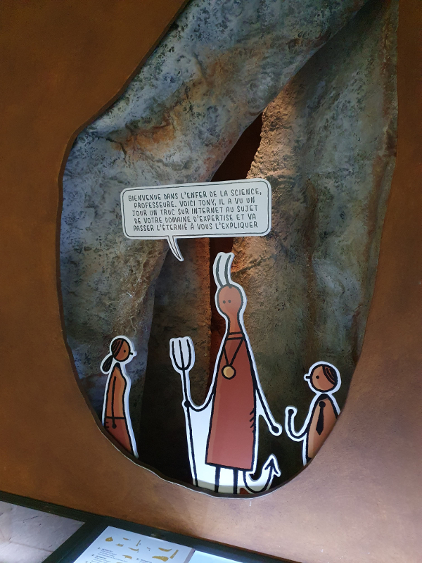 Pour la saison culturelle « Magies – sorcelleries », le Muséum de Toulouse a ouvert ses salles au cartooniste Tom Gauld. Il parsème ainsi de son humour acéré les différentes zones de l’exposition permanente. Et c’est quelque chose qui m’a beaucoup plu. Au-delà d’être un simple gimmick ou clin d’œil juste humoristique, je trouve que ce genre d’initiatives apporte un vrai plus à la muséographie. En remettant en perspective la raison d’être de la science avec légèreté, on se retrouve à regarder les vitrines avec plus d’acuité. Certaines de ses planches font particulièrement écho dans cette période troublée. D’autres sont là juste pour la poilade, et permettent de créer un dialogue avec les enfants. Bref, une manière intelligente de jeter un œil neuf sur le patrimoine !