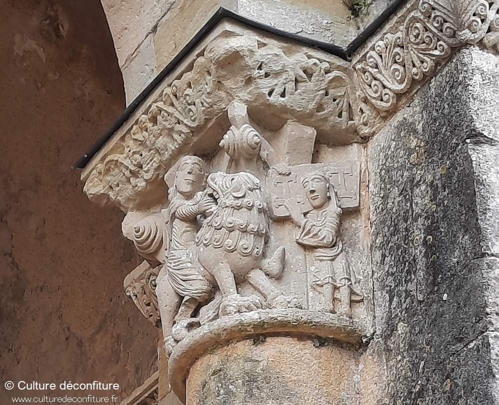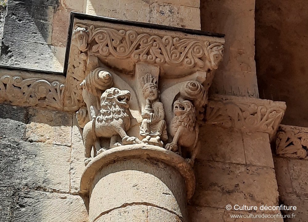 Le chapiteau de Daniel dans la fosse aux lions est une évocation indirecte de l’histoire de Christ. En effet, le séjour du prophète Daniel dans la fosse aux lions est rapproché de la descente du Christ aux Enfers après la crucifixion. Mais Daniel triomphe des fauves comme Jésus triomphe de Satan.