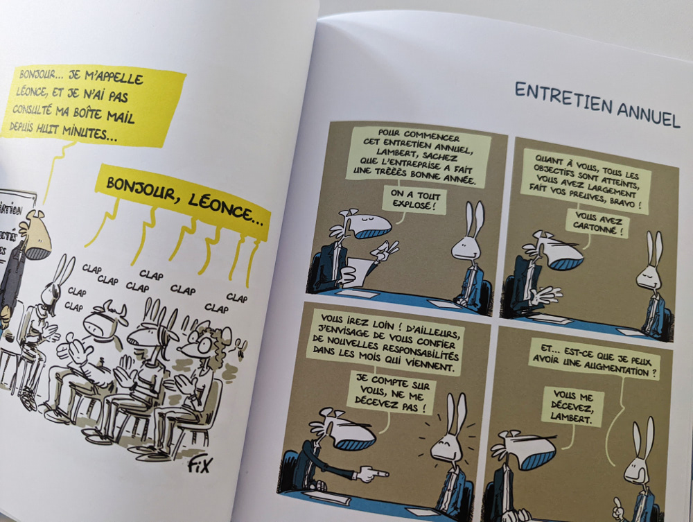 Amis des métiers de la tech, de la start-up nation, de tous les boulots qui de près ou de loin parlent data, performances & modèles disruptifs… Vous allez aimer Léonce, cadre en entreprise. Peut-être une once de mauvaise foi viendra repousser une identification pourtant facile, bien que nos héros soient des animaux. C’est que François-Xavier Chenevat manie à la perfection l’ironie et le non-sens du monde de l’entreprise. C’est implacable et véridique. Vraiment l’une des mes meilleures dernières lectures BD !