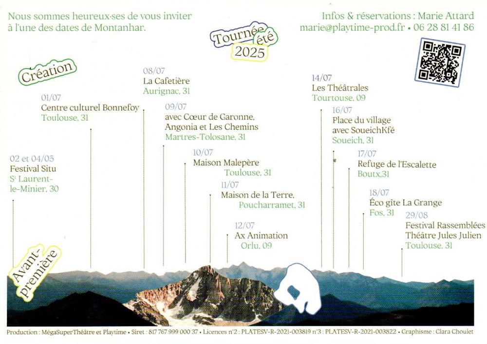 Pendant tout l’été, les artistes prendront la route des montagnes en vélo pour faire tourner leur spectacle dans le Comminges et l’Ariège, puis reviendront à Toulouse le 29 août pour le Festival Rassemblées au Théâtre Jules-Julien.