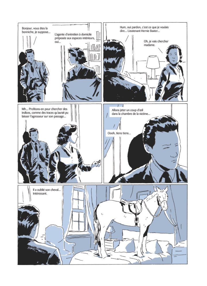 Ce sont désormais les enquêtes policières cousues de fil blanc qui l’ont inspiré pour cet album paru en septembre 2021. Avec son style de dessin très proche du roman photo des années 80, Fabcaro nous entraîne sur le plateau de tournage d’un western au cours duquel l’actrice principale subit une mystérieuse agression. Le lieutenant Baxter vient sur les lieux pour mener l’enquête.