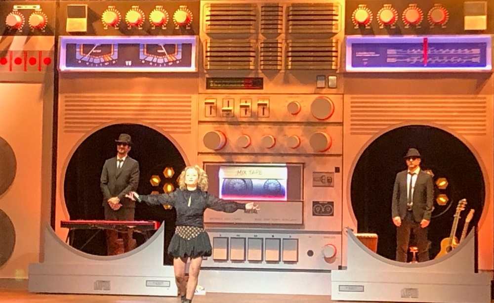 Show musical ? One woman show ? Difficile de qualifier le spectacle Numéro 5 de Chollet, tant la donzelle touche à tout. Lorsque le rideau s’ouvre, le public découvre sur la scène un gigantesque ghetto-blaster : le ton est donné ! Le spectacle sera sous le signe de la musique pop !