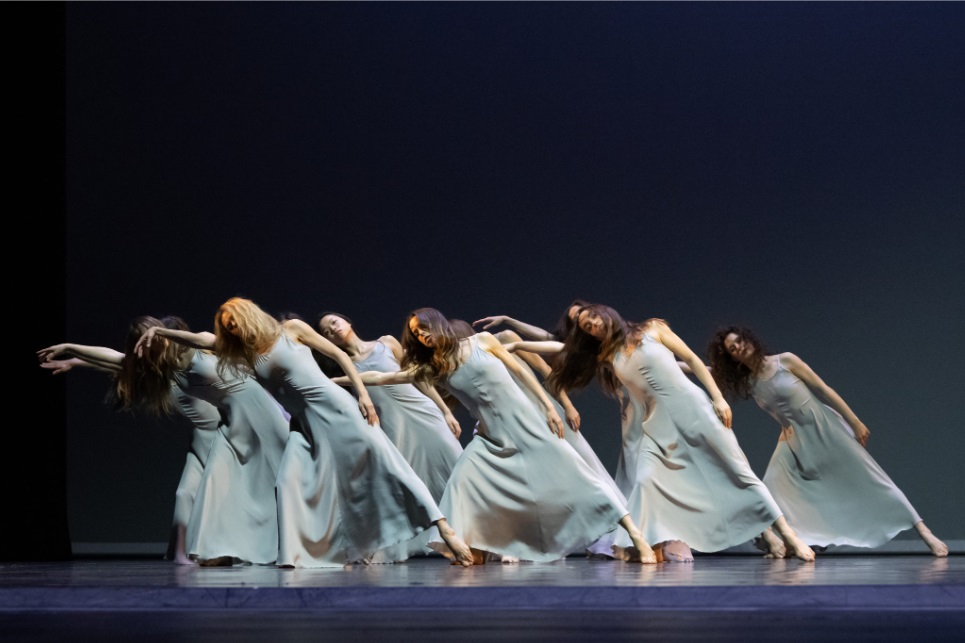 Cette pièce 100 % féminine est certainement celle des trois qui m’a le moins convaincu. La musique laisse imaginer qu’un vent marin souffle sur la scène, tandis que 14 sylphides flottent dans leurs robes vaporeuses. Par de nombreux aspects, Wind Women fait penser au deuxième acte de Giselle, ballet romantique emblématique au cours duquel des créatures oniriques dansent jusqu’à la mort dans une lumière lunaire. Wind Women dessine un paysage intérieur abstrait et évanescent dans lequel l’esthétique prend à mon goût un peu le pas sur l’émotion…