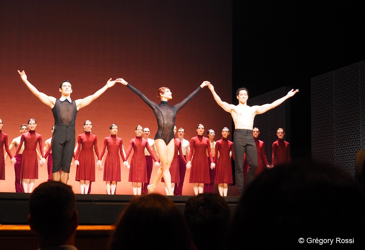 Ce que j’ai préféré dans ce ballet, c’est l’immense rideau de fond de scène aux reflets d’or qui s’élève lentement pendant les 25 minutes du ballet. Le rendu est splendide. Autre point d’intérêt : les parties dansées en silence entre les mouvements de la musique de Gluck, où l’on n’entend que les bruits des pieds sur la scène et la respiration des danseurs. Captivant.