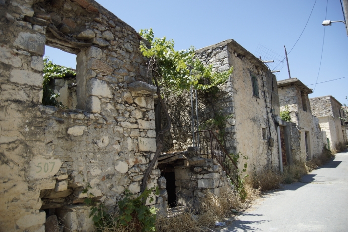 Nous avons donc roulé tout du long de ce plateau, entre petits villages souvent déserts, édifices religieux et petites gargotes isolées. C’est surtout des villages traditionnels qu’on croise en sillonnant le plateau de Lassithi. Nous y avons croisé très peu de monde, si ce n’est quelques habitants assis sur le pas des portes de leurs maisons, notamment des mamies toutes vêtues de noir. Une vie un peu hors du temps, que nous avons pu observer le temps de déguster un tzatziki et une salade grecque en terrasse.