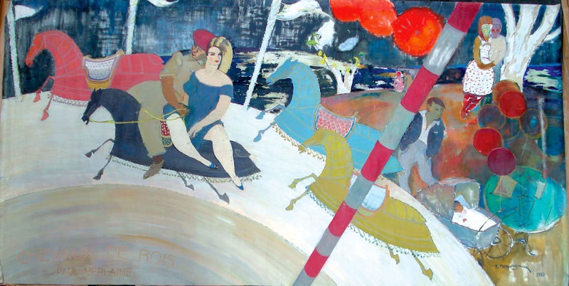 Avec cette peinture inspirée par le poème « Chevaux de bois » de Verlaine, on est en plein dans le thème en effet !