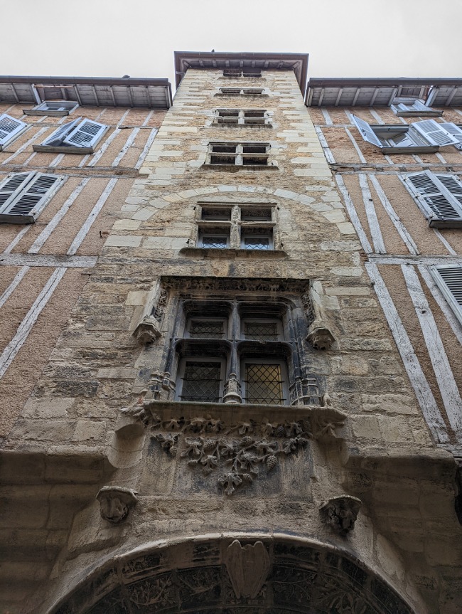 Villefranche-de-Rouergue est une de ces “villes nouvelles” fondées par le pouvoir Capétien. La ville est créée en 1252 à l’initiative d’Alphonse de Poitiers, avec des avantages fiscaux. D’où le nom de la ville ! On retrouve un plan quadrillé typique, et je peux vous dire que les rues y sont trèèèès étroites (RIP ma portière droite) (pas ma faute) (j’avais prévenu). Au centre, la place Notre-Dame avec ces belles arcades médiévales.