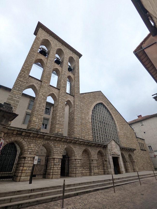 J’ai surtout beaucoup aimé visiter la chapelle Sainte-Emilie-de-Rodat. Je suis toujours assez fascinée par les églises du XXème siècle, celle-ci a été consacrée en 1952. La façade de style néo-gothique, avec son parement de pierres alternées assez géométrique, est remarquable. Il y a aussi un très beau clocher-mur, un élément architectural bien particulier qu’on ne voit pas partout. Le décor intérieur est lui aussi vraiment beau. On retrouve également deux autres bâtiments religieux emblématiques à Villefranche-de-Rouergue : la chapelle des pénitents noirs et le monastère de la Chartreuse Saint-Sauveur. Deux visites mémorables, je reviens vous en parler très vite !