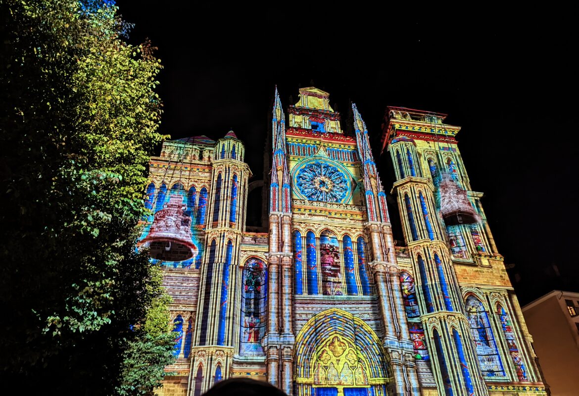 Impossible de parler de Rodez sans évoquer son patrimoine religieux qui écrase tout le reste par ses dimensions. Il y a bien sûr la cathédrale Notre-Dame, dont je vous parlerais plus longuement très prochainement. Nous avons eu la chance d’assister au spectacle de mise en lumière de la cathédrale un soir d’été. Voir la façade s’animer et l’histoire se dessiner sur la pierre rouge à la nuit tombée était un moment assez magique.